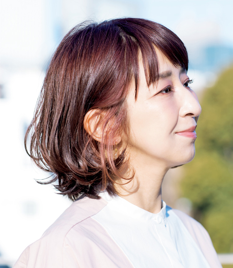 「“したい”髪型より“似合う”髪型を重視するようになりました」と言う鈴木千夏さんのスタイルは、毛量がたまりやすい耳下の部分の内側を削り、表面はツヤを意識したボブ。