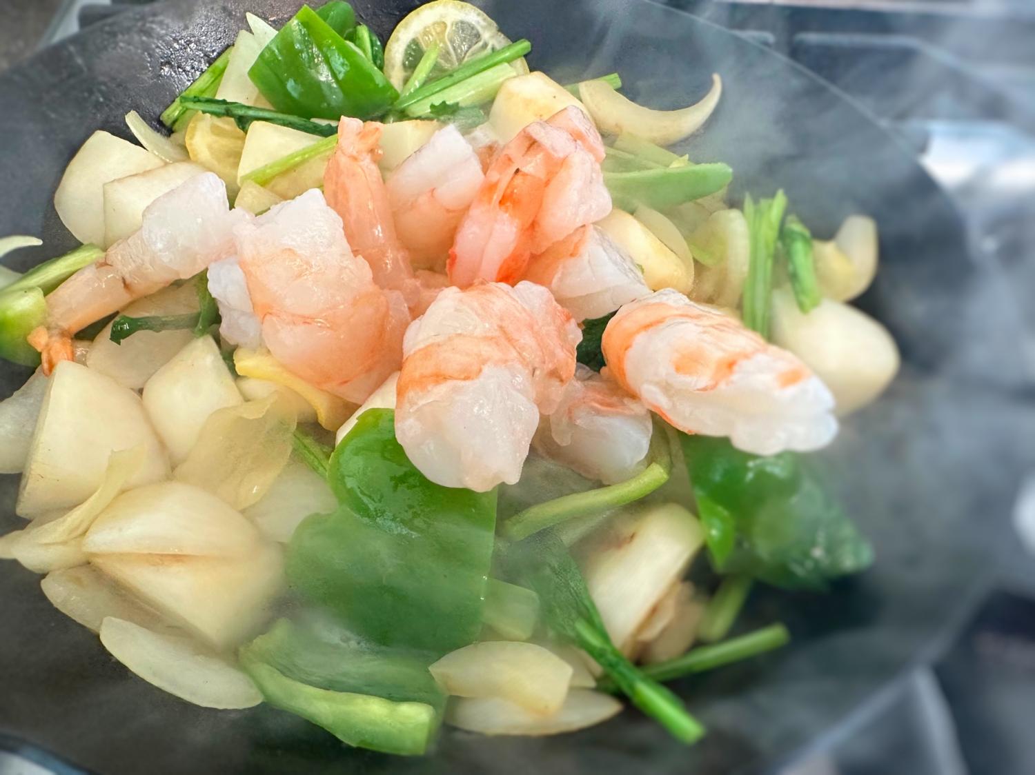 えびと旬野菜のレモン塩炒め