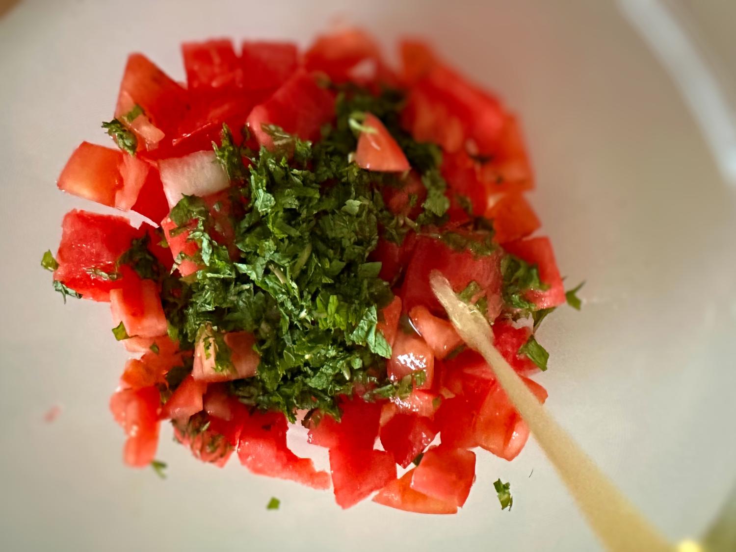 トマトとスイカ、ミントのサラダ【ボウルひとつでOK!】
