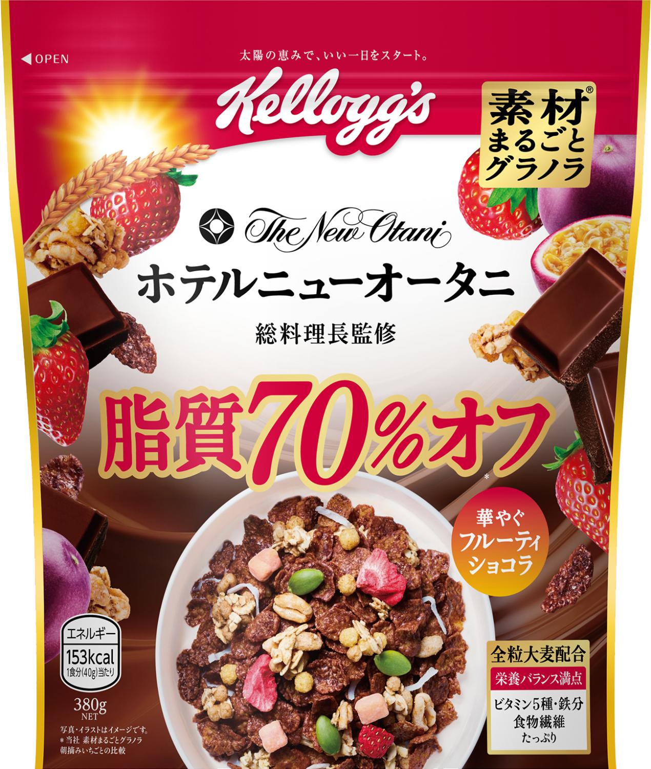 素材まるごとグラノラ脂質70%オフ華やぐフルーティショコラは、脂質70%オフ(※2)でも満足感を十分に感じられるよう、おいしさを追求して開発されたシリアル。