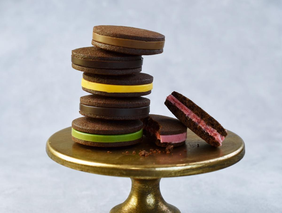 今回ピックアップしたのは、6種類のフレーバーチョコレートをサンドした贅沢なチョコレートサンド。クッキーはサクサク、チョコレートはなめらかで濃厚な味わいで、口に入れるとあっという間にとろけてしまいます。