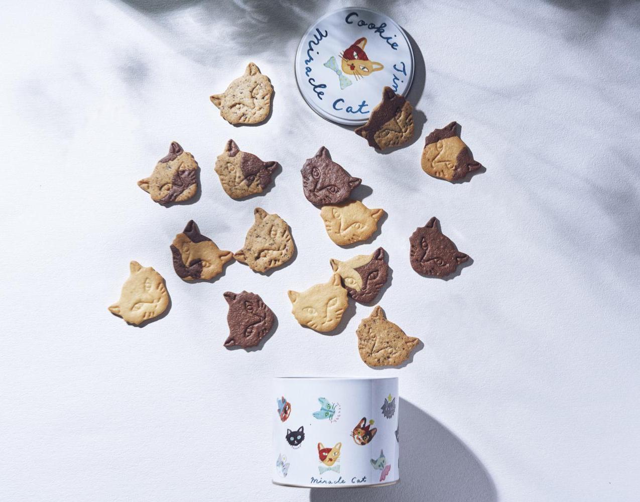 Miracle Cat Cookie Tin (神様のいたずらネコクッキー缶)【発酵バタークッキー、カカオクッキー、チョコチップクッキー、ほんのりカカオの発酵バタークッキー、ほんのりカカオのチョコチップクッキー 各3枚入り】¥2,600/フェアリーケーキフェア