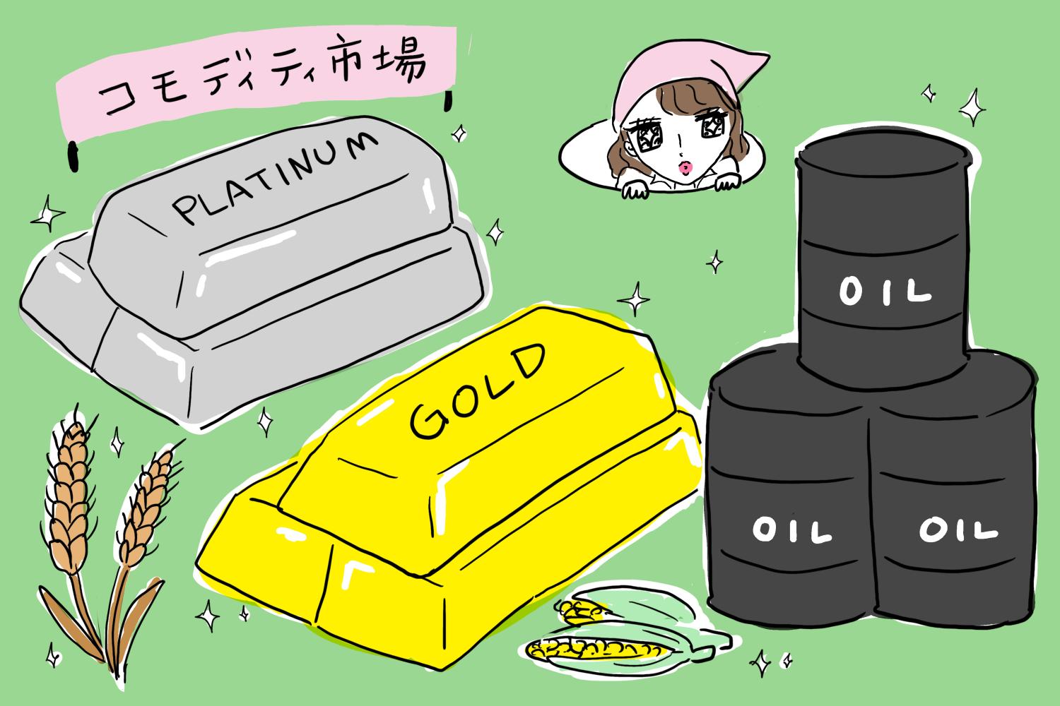 一般的には商品や日用品などを指す言葉ですが、投資の分野では貴金属(金や銀、プラチナなど)やエネルギー(原油など)、農産物(小麦や大豆など)といったものを指します。