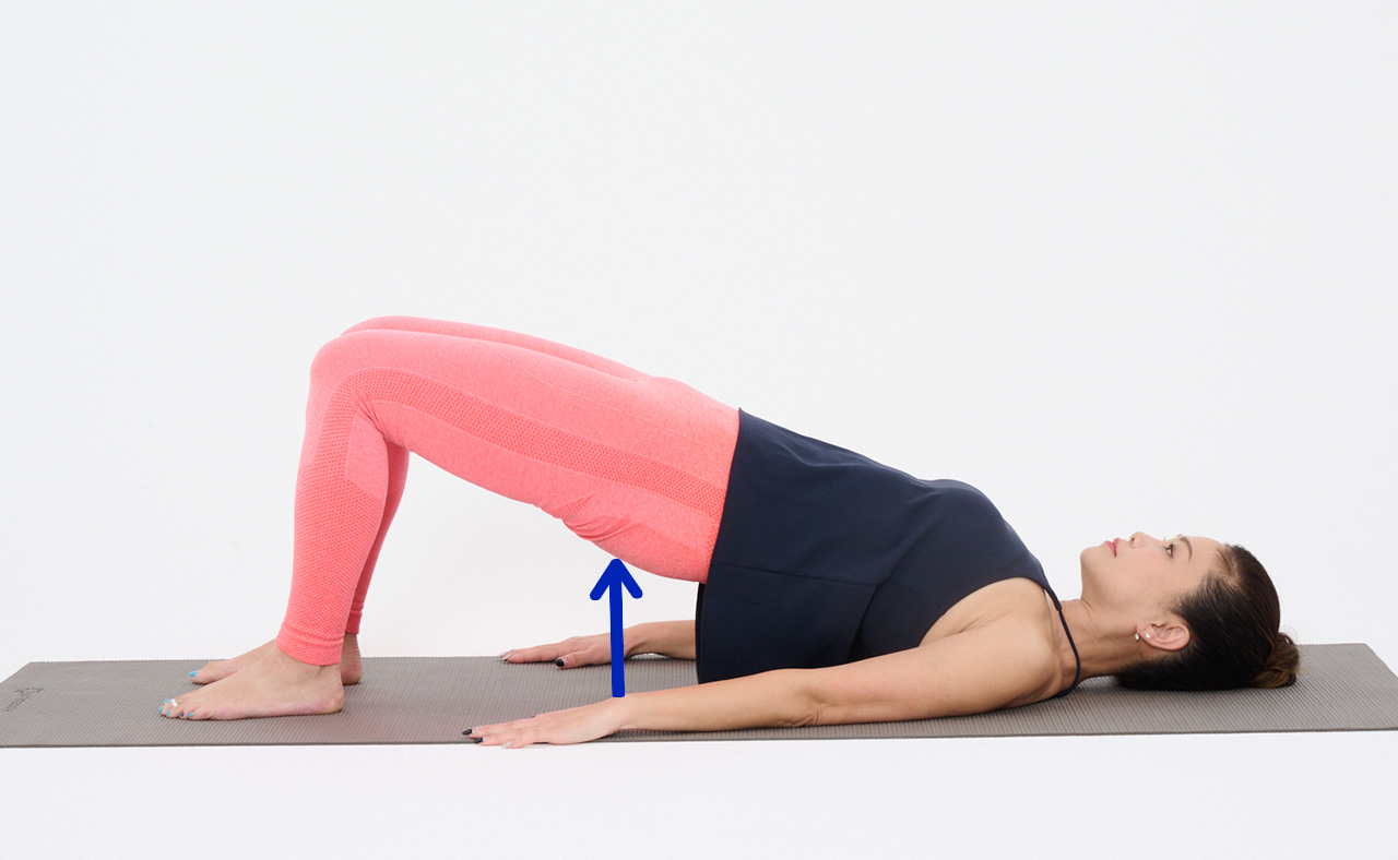 これを10回繰り返します。お尻を引き上げたとき腰が反らないように、お腹に力を入れましょう。
