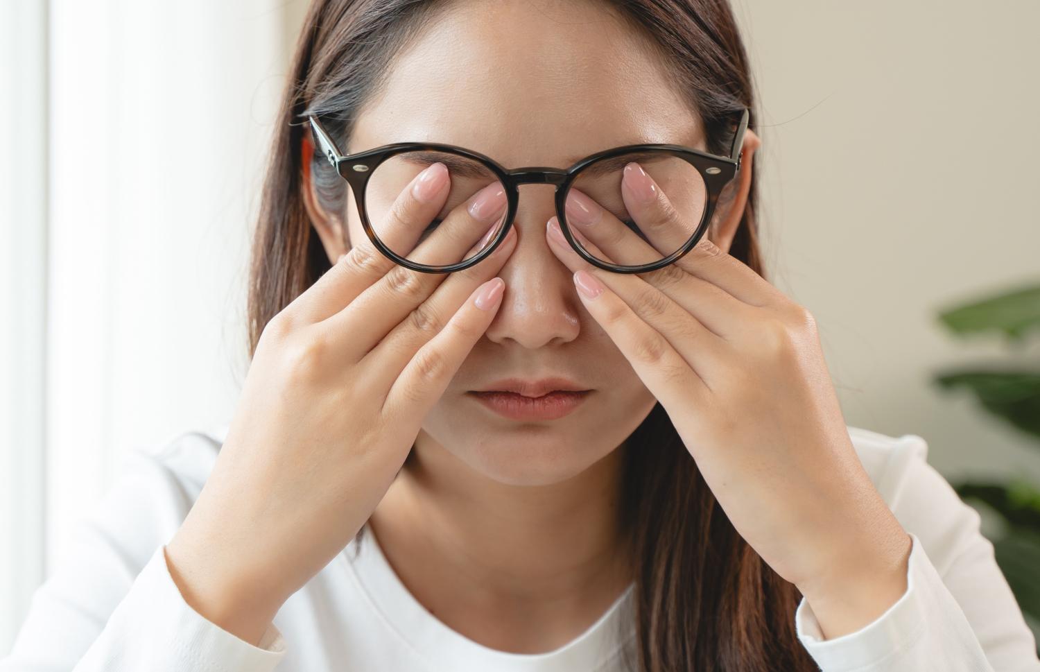 眼精疲労の症状はピントが合いにくい、かすむ、まぶしい、充血する…などのほか、頭痛やめまい、肩こり、吐き気などの全身症状に及びます。