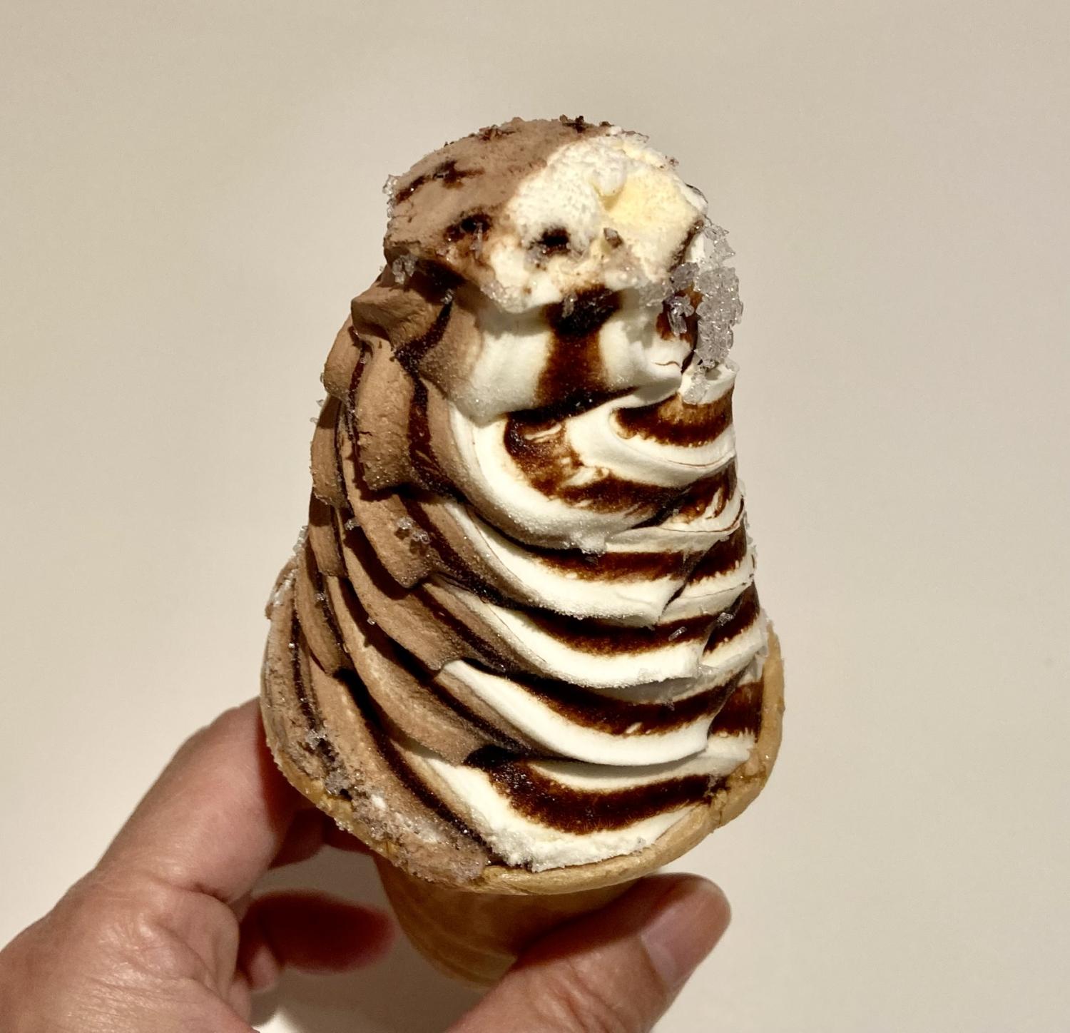 2日目は、同じくコンビニで購入したコーンに入った低糖質アイス。グリコ「SUNAO チョコ&バニラソフト」(170ml/糖質8.9g)。
