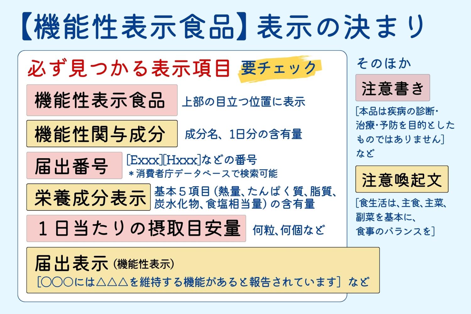 【機能性表示食品】には、以下のような決まった項目の表示があります。