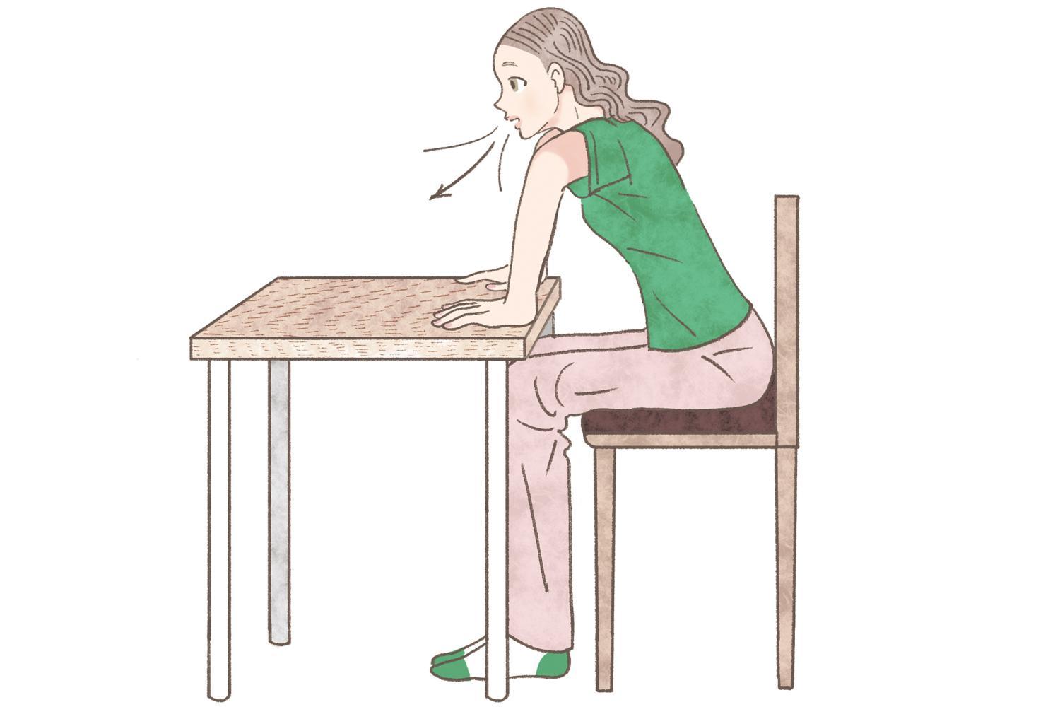 テーブルに手をつく「背中呼吸」