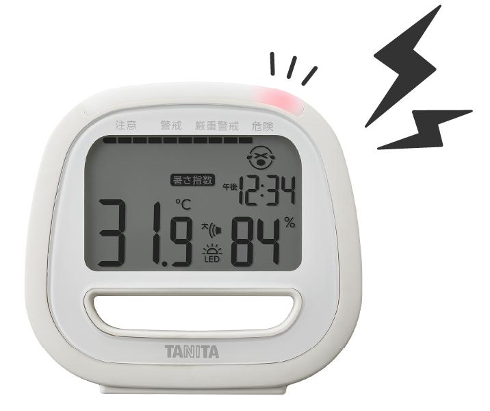 イラストとLEDの点滅で、暑さ指数と乾燥指数を表示。暑さ指数が「危険」のときにはアラーム音で知らせてくれるので、目でも耳でもわかりやすいのがうれしい。部屋になじむかわいいデザイン。温度・湿度・時計の機能を備えています。コンディションセンサー TC-422 ¥5,500(オープン価格・価格は編集部調べ)/タニタ https://www.tanita.co.jp/product/hygrometer/5296/