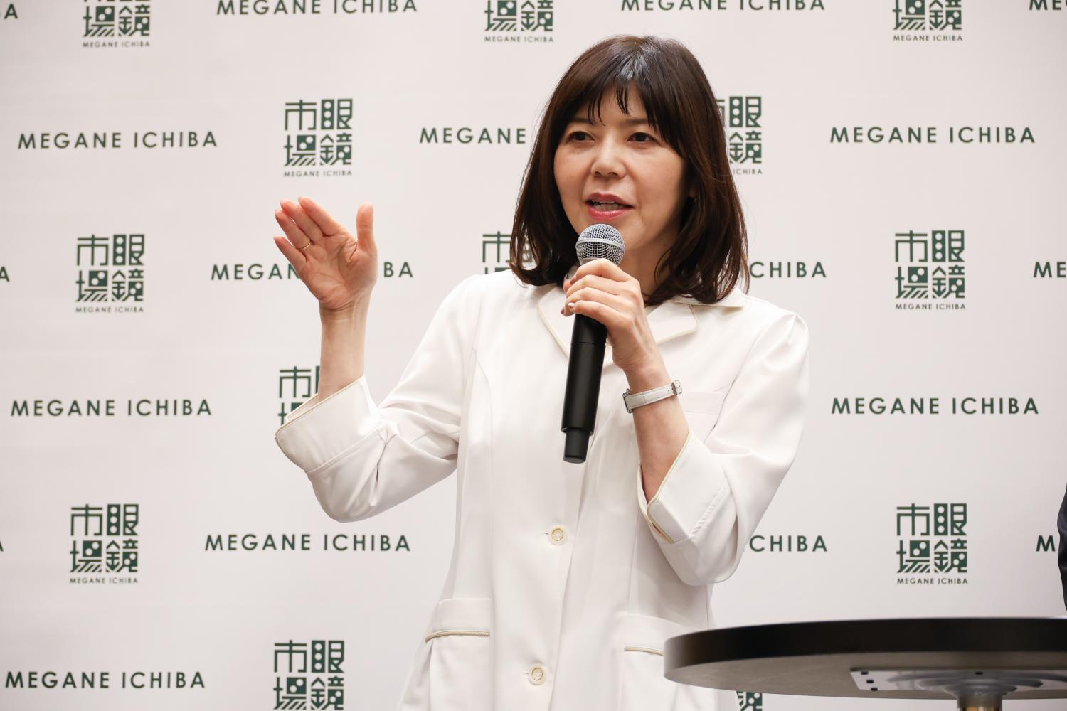 発表会では、同社 代表取締役社長 冨澤昌宏氏、商品部部長 櫻井憲一郎氏、そして眼科医 有田玲子先生が登壇。
