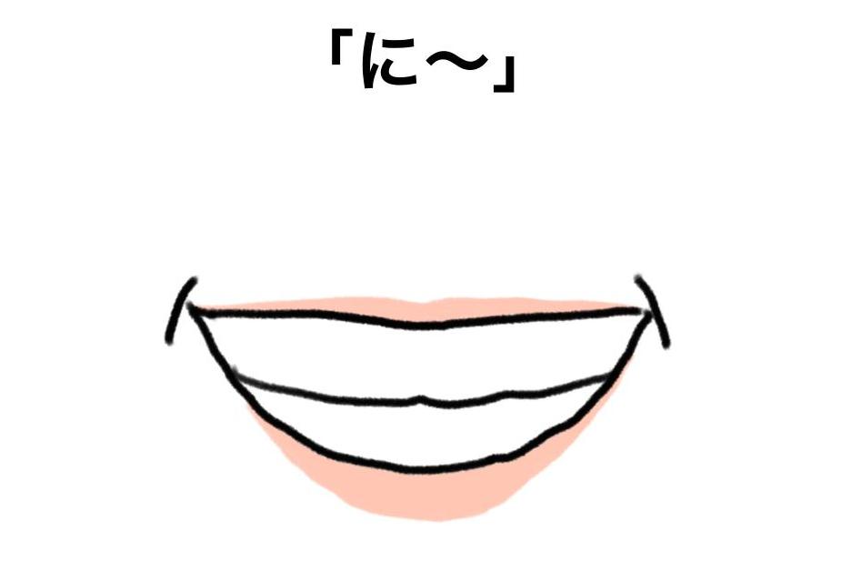 【2】「に~」:口を思い切り横に広げて「に~」と発音します。