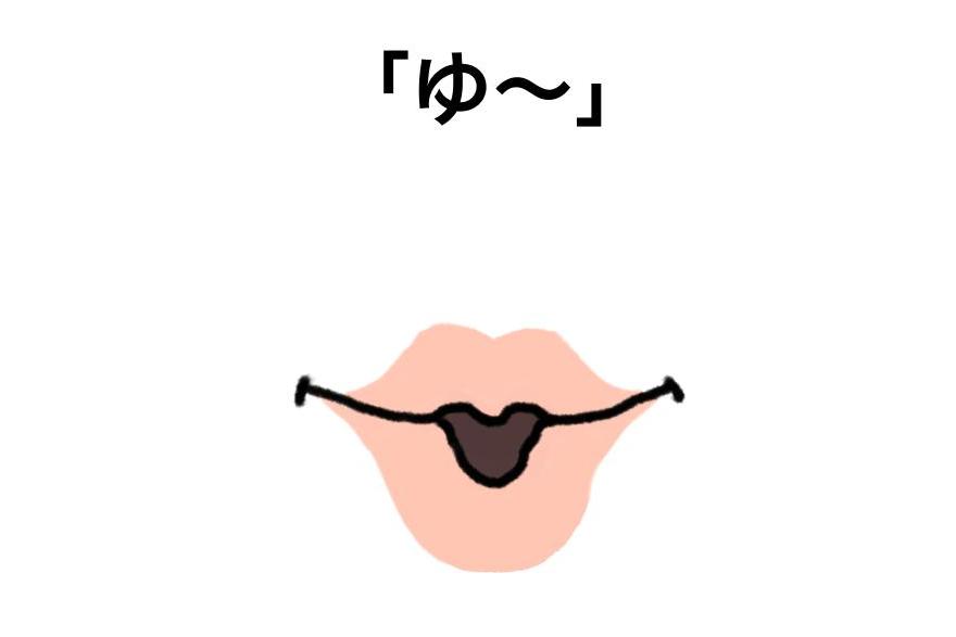 【3】「ゆ~」:唇をつぼめて、突き出すようにして「ゆ~」と発音します。