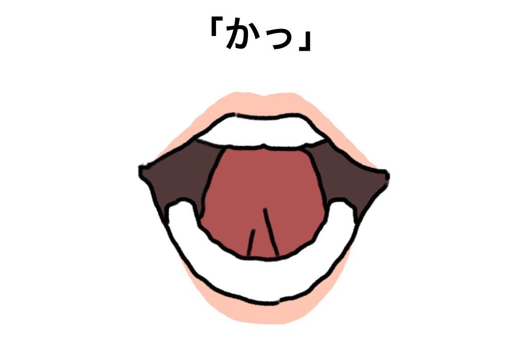 【1】「かっ」:舌先を上あごのへこみに押しつけて、強く「かっ」と声を出します。