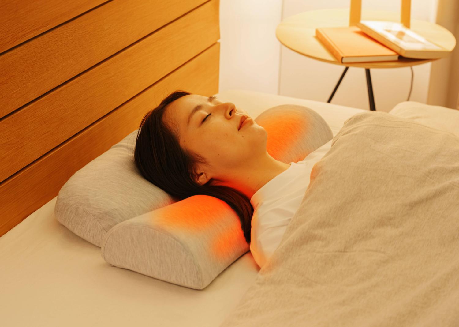 就寝前や就寝中の首と肩をじんわり温める、うれしい機能が枕に!