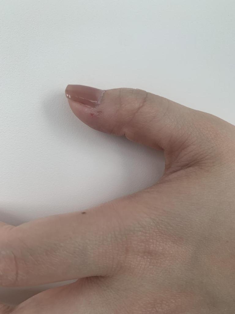 撮影を手伝ってもらったのはアルバイトのSさん(20代)。「私も爪が弱くて、今、ケアしてるんですよー」とのこと。彼女も使ってみました!