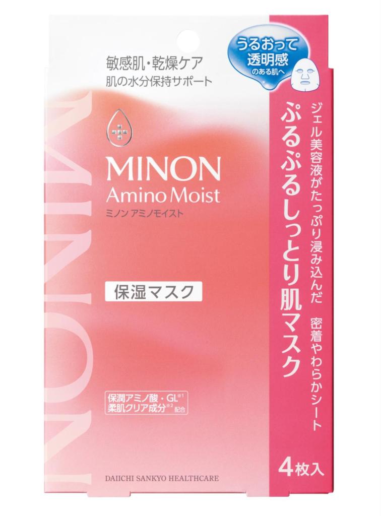 ●ミノン アミノモイスト ぷるぷるしっとり肌マスク 22ml×4枚 ¥1,320(編集部調べ)/第一三共ヘルスケア