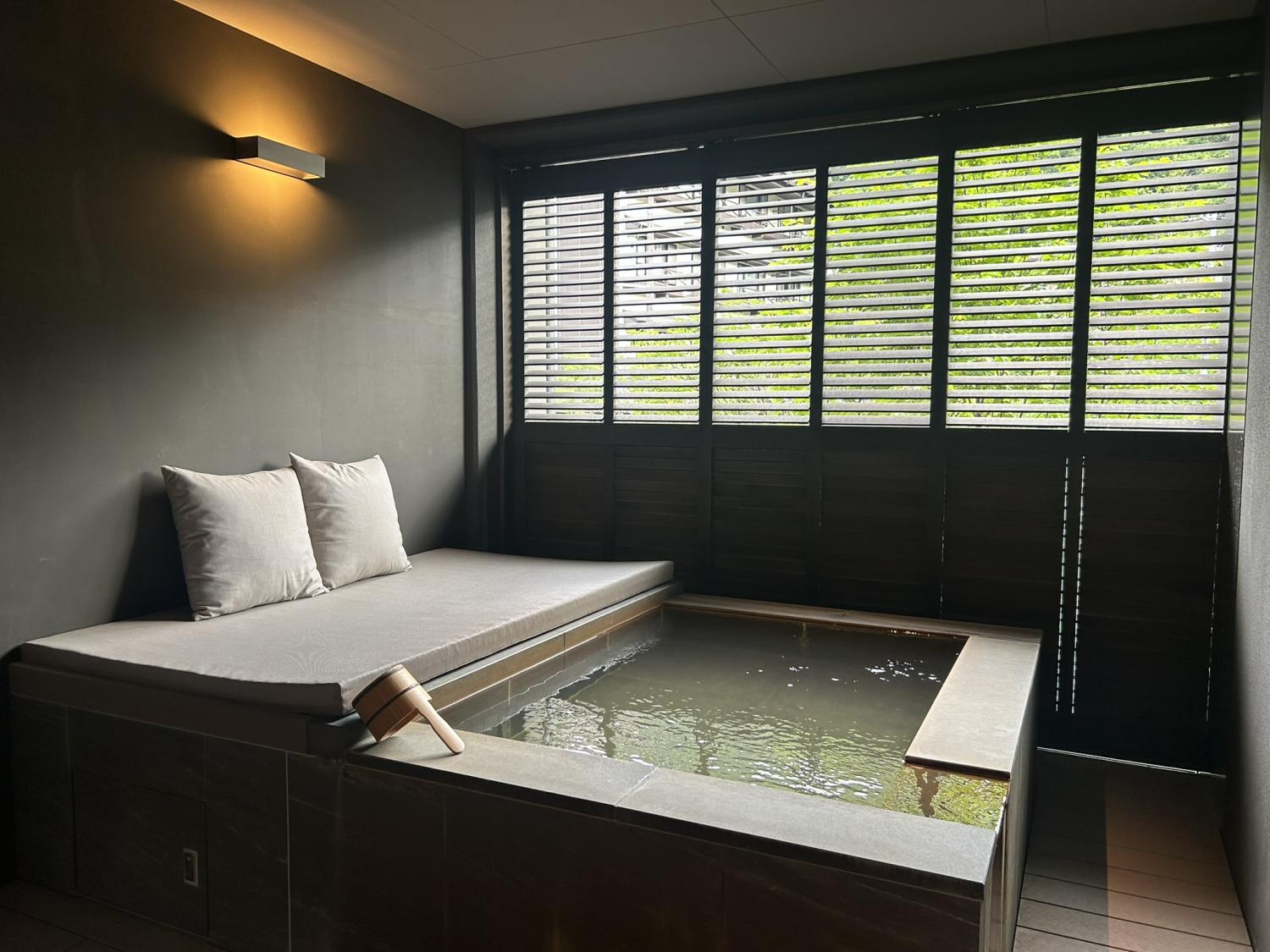 露天風呂は変わったデザインでびっくりしました! 禅的というか、美術館の庭園というか、これ自体がひとつのアートのようです。