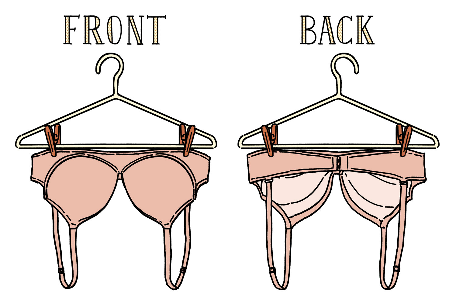 「洗うときは、型くずれや生地のひっかけ防止のためにホックをかけて、中性洗剤を溶かしたお湯で押し洗いしましょう。その後、型くずれしないように気をつけながら、タオルにのせて水気を吸い取り、土台ベルトを上にして干せば生地の伸びを防げます。下着は直射日光が苦手なので換気のよい室内で日陰干ししましょう」