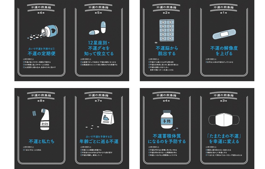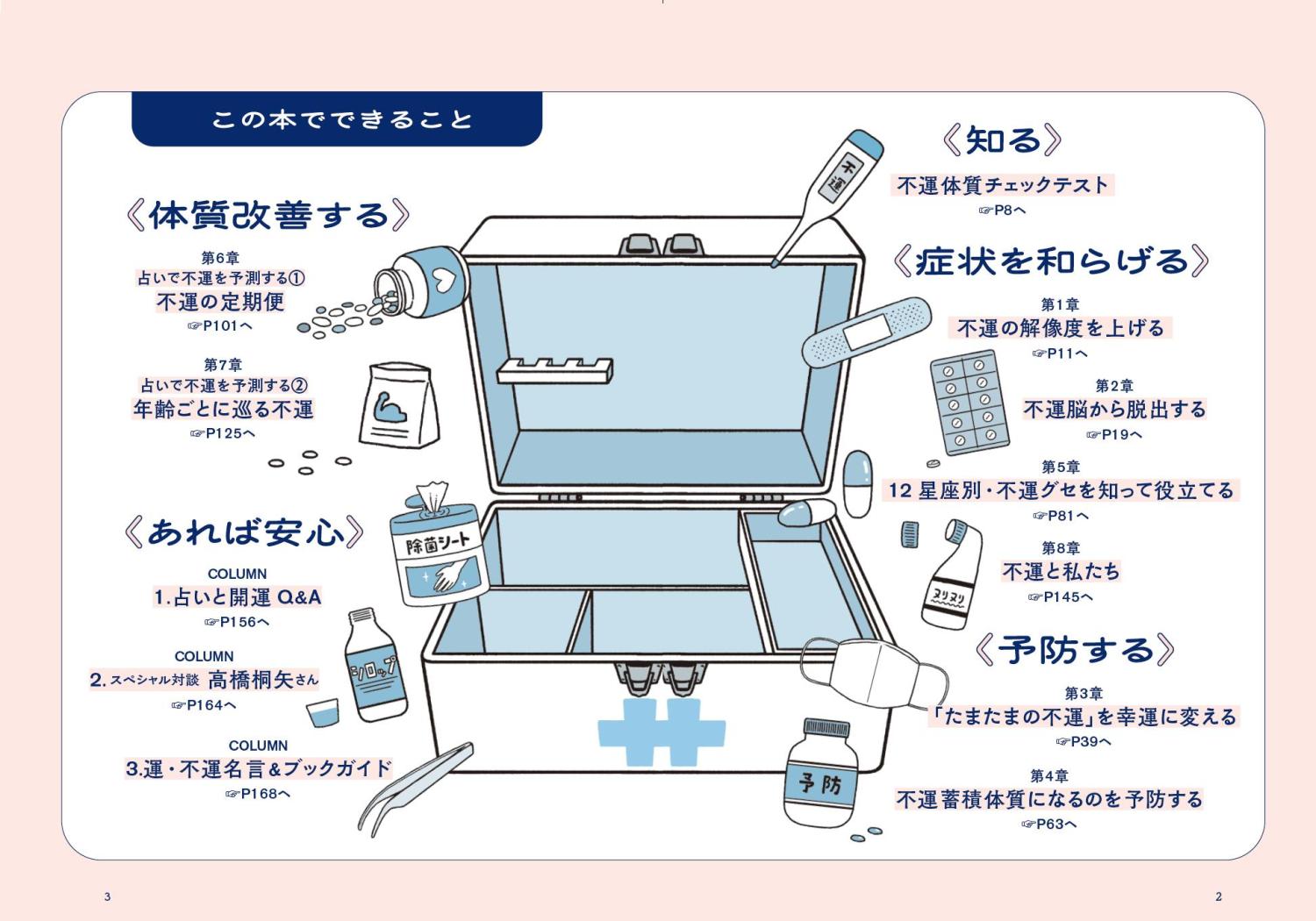 そうなんです。「~不運の救急箱~」のサブタイトルには、一家に一冊ある救急箱のような存在になりたいという思いが込められているのですが、「技術」でいろいろ応急処置や予防措置を取りつつ、「占い」では不運を招かないような体質づくり、体質改善をしていただきたい、という構成になっています。
