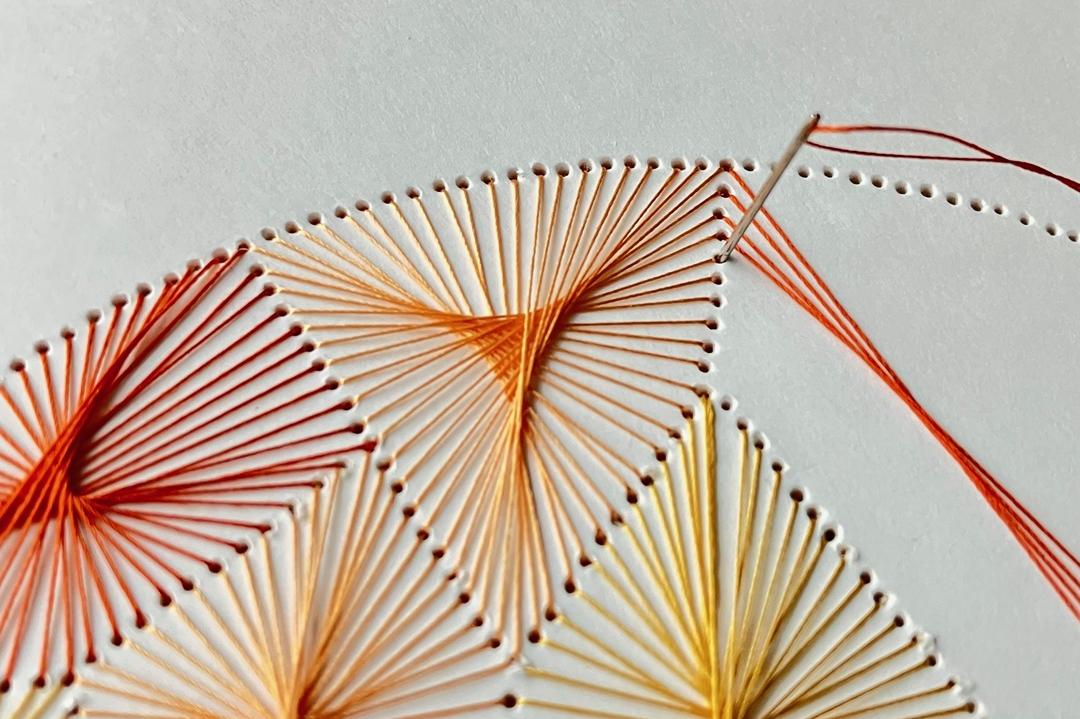 初心者でも大丈夫!台紙に開いた穴に針を使って糸を通していく「糸とおし」。通し方や糸の色、台紙によってもかなり印象が変わります。何時間も集中してひとつのことを進めることで脳の疲れが取れていくようです。