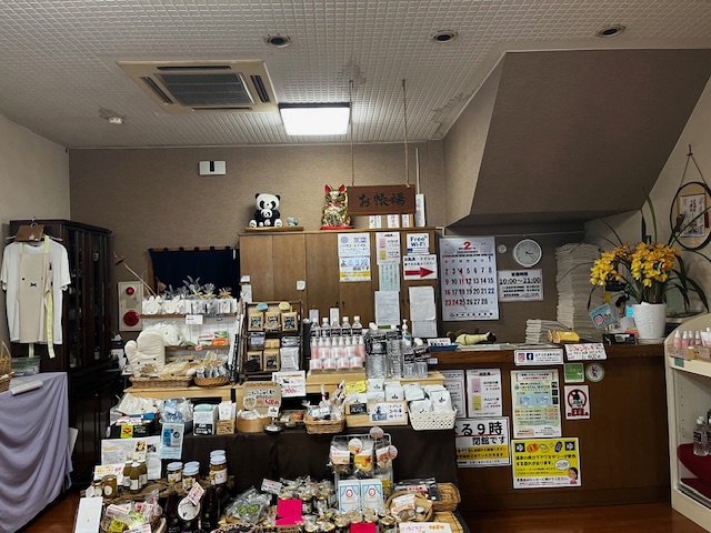 ↑受付前には地元でとれた野菜や果物、名産品のお土産がずらりと並んでいます