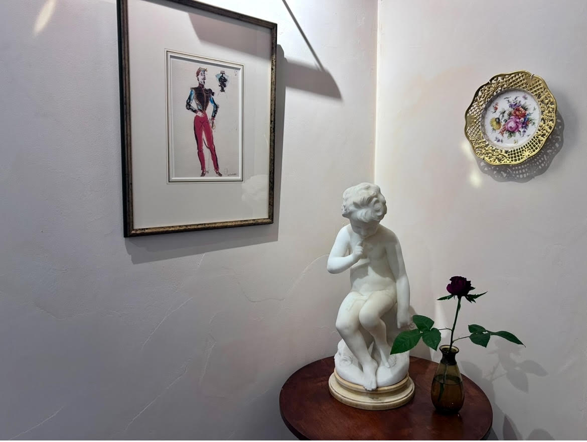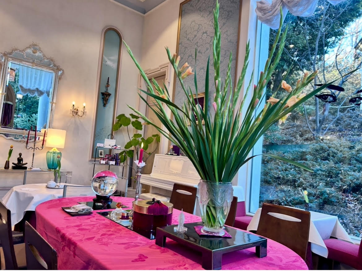 ティールームにはこだわりの調度品や花々。ため息がでちゃいます。