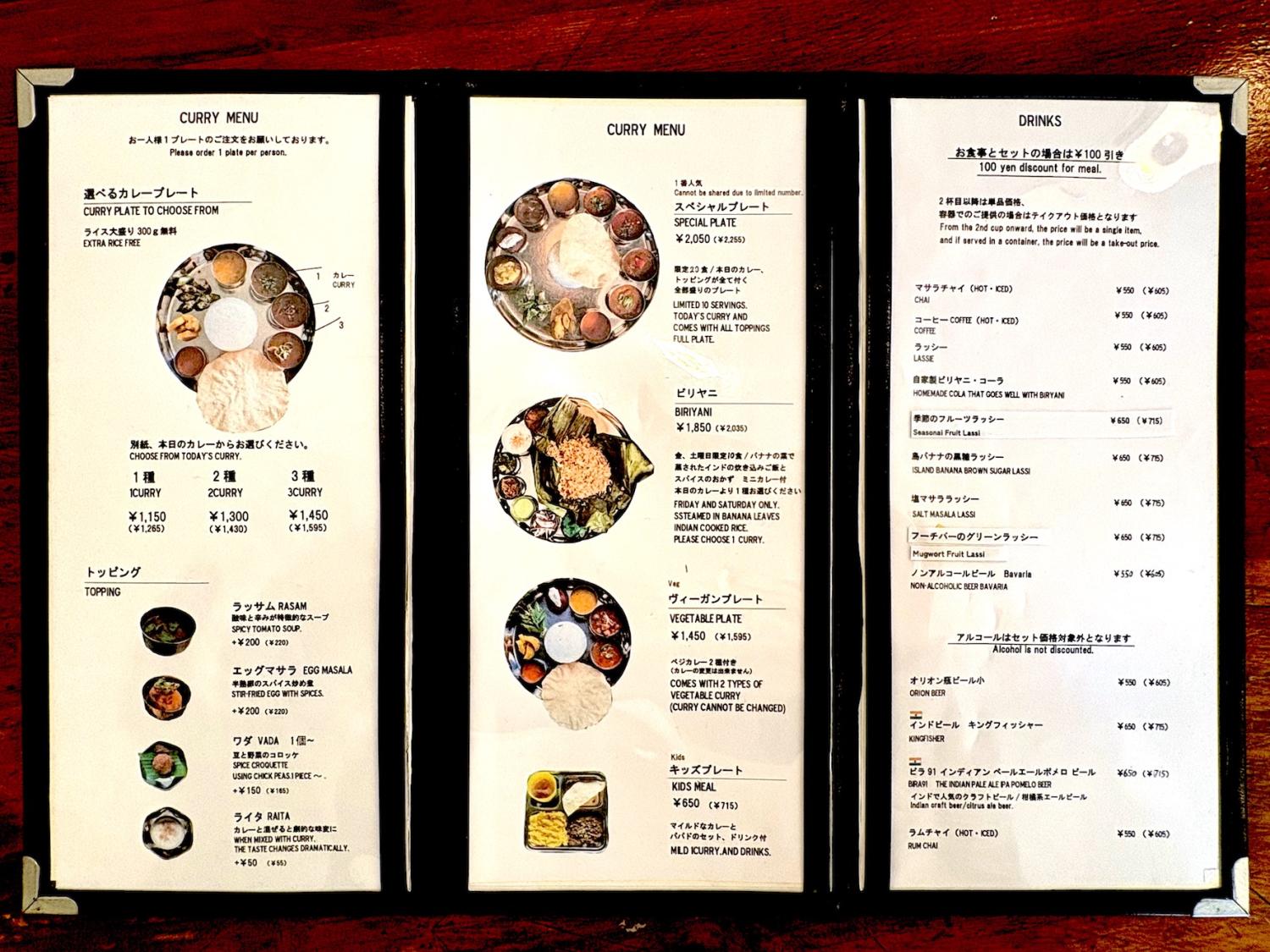 ミールスと呼ばれる南インドの定食。基本的には菜食ベース。季節の野菜や豆を使ったカレーやお惣菜がいっぱい。チキンやお魚のカレーもありますが、どれも油ひかえめのサラっとしたスープのような食感です。