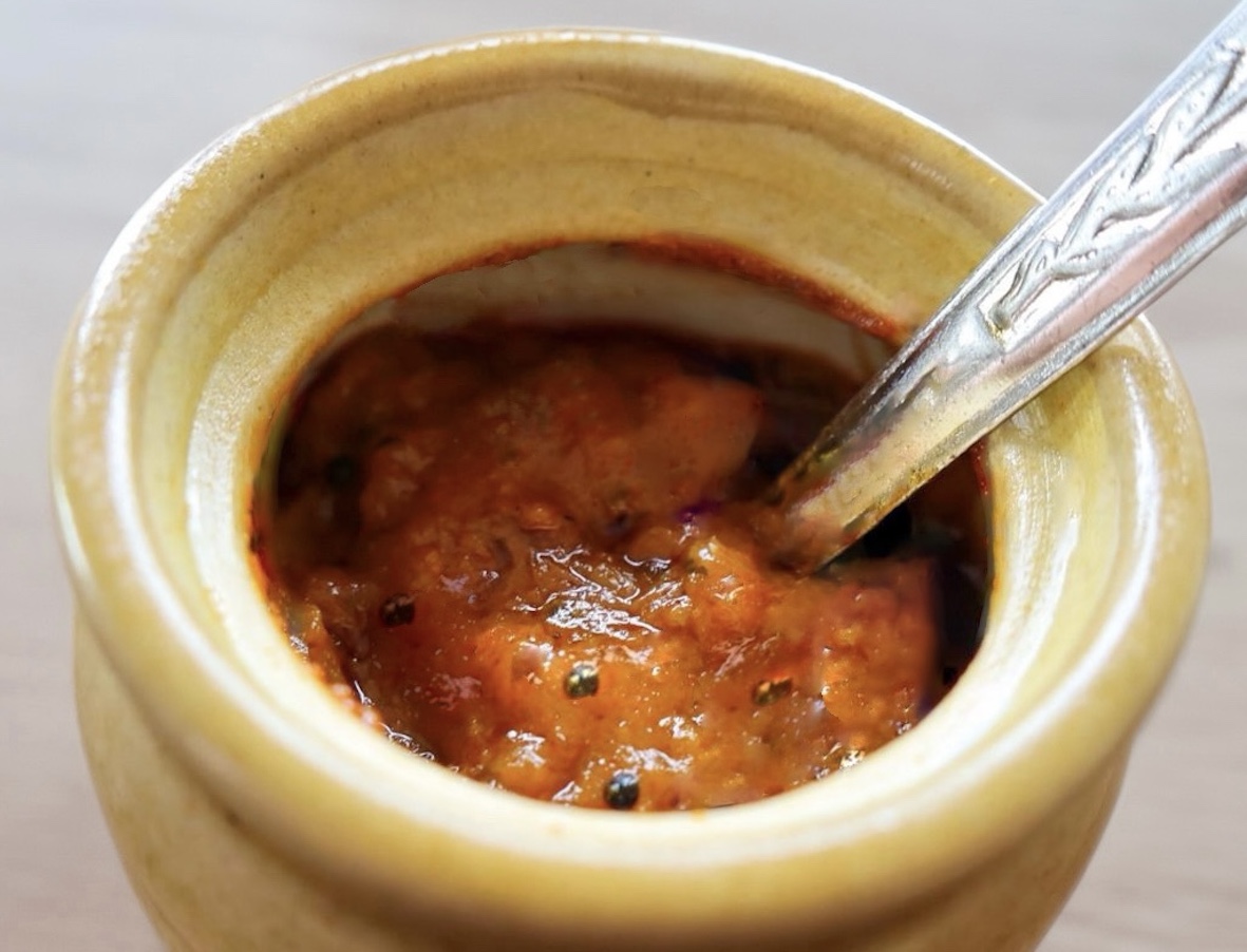 このお店で忘れてはいけないのが、卓上に置いてある自家製レモンチャツネ。パンチのきいた爽やかな酸味と辛味がクセになり、これをトッピングすると全ての味がさらに引き立って、いくらでもご飯が食べられちゃう。