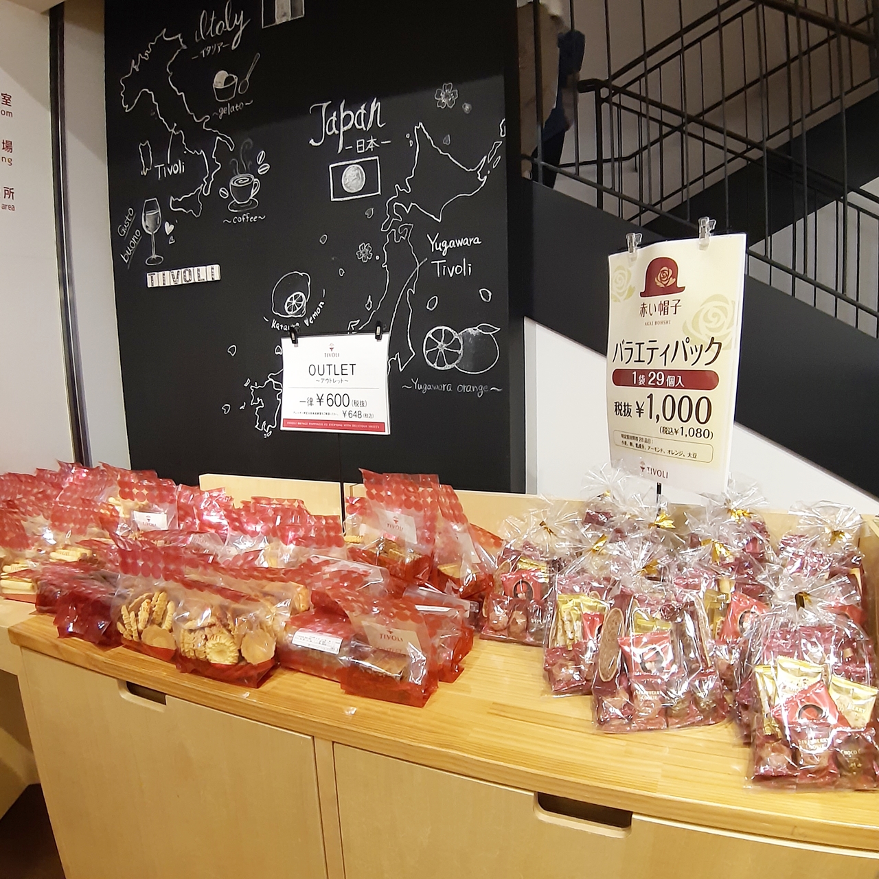 ショップではお得なアウトレットやお楽しみ袋なども販売しています。
