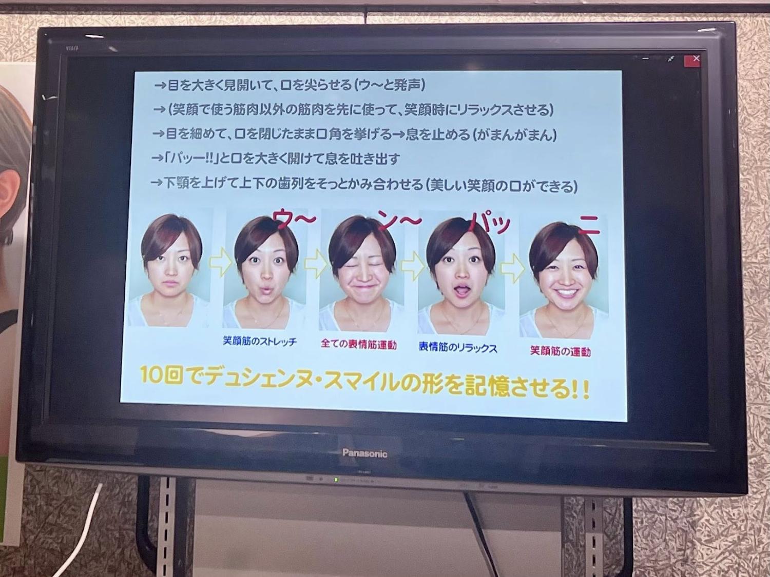 フェイスストレッチング講師の友人とコラボ活動の際、ご参加された皆さんと一緒に毎回最初に行うウンパニ体操。笑顔が得意でないという方でも、練習次第で本物の笑顔を形成することができるとのこと。そのための体操の一つがウンパニ体操です。実験によって明らかになっているそうなのですが、「ウ~ン~パッニ」が笑顔に使われる筋肉を最も多く使う言葉の組み合わせなのだそう。