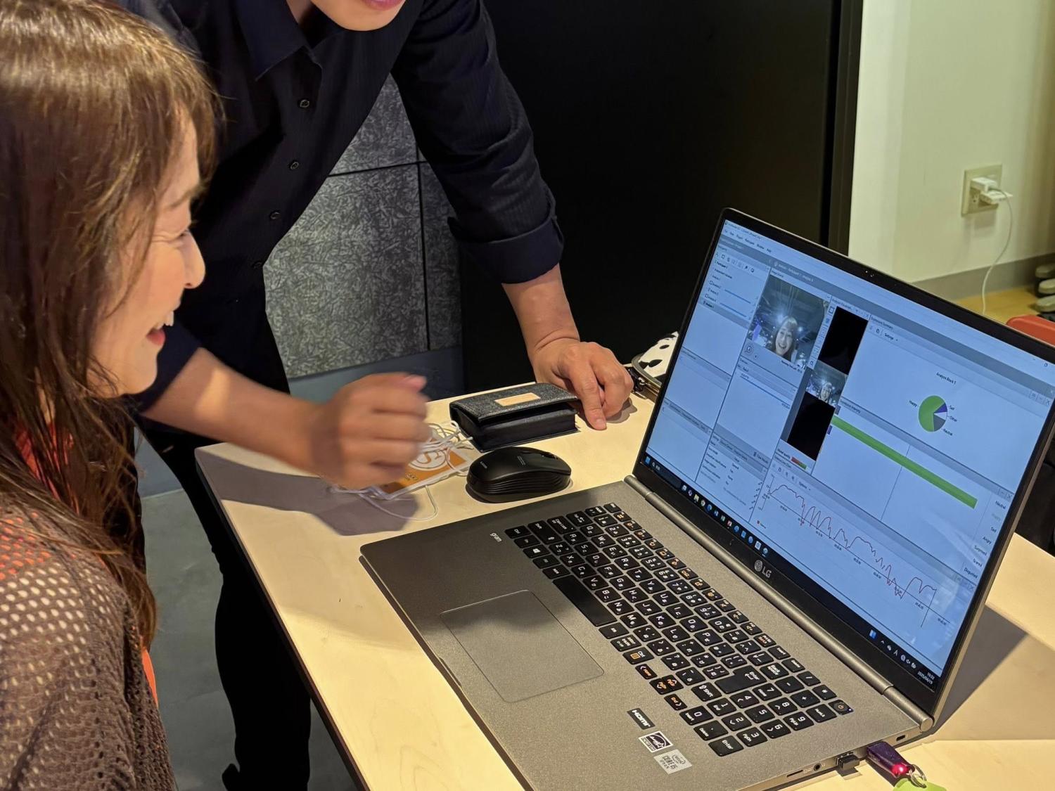 笑顔の中身が瞬時にわかるという表情計測体験にチャレンジ。