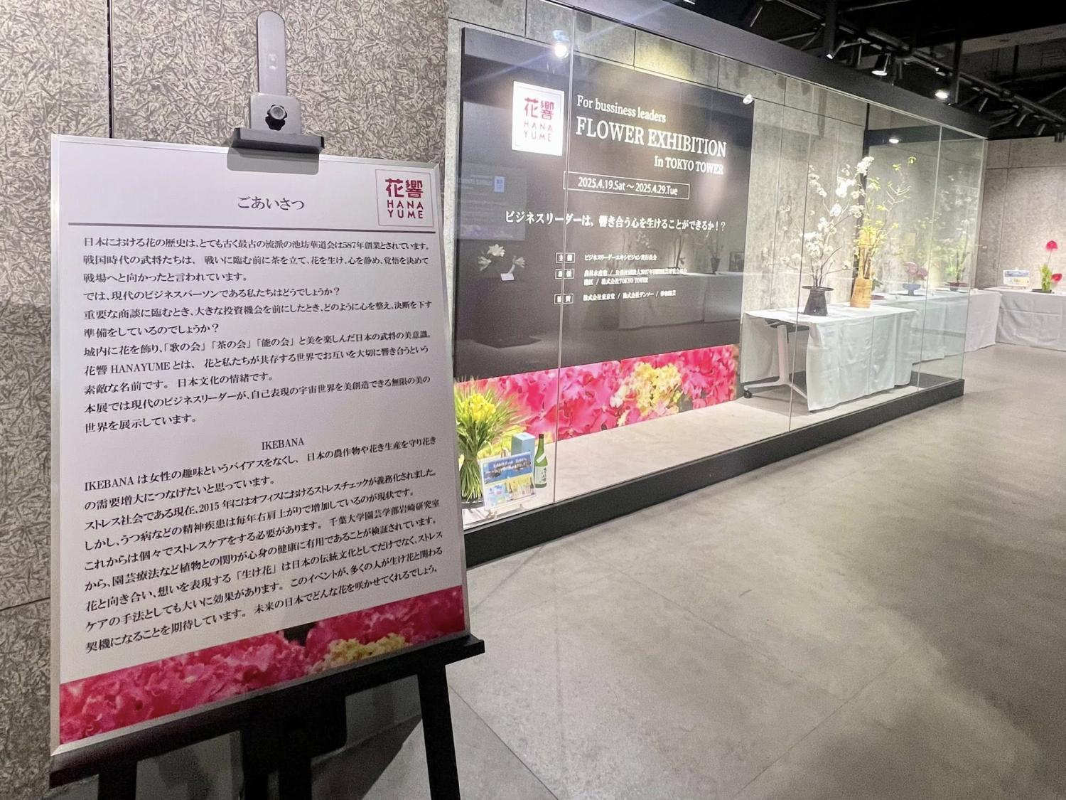 ビジネスリーダーの響きあう心や思いを花で表現してみようという試みの「花響HANAYUME」が、東京タワーのギャラリーでイベントを開催。