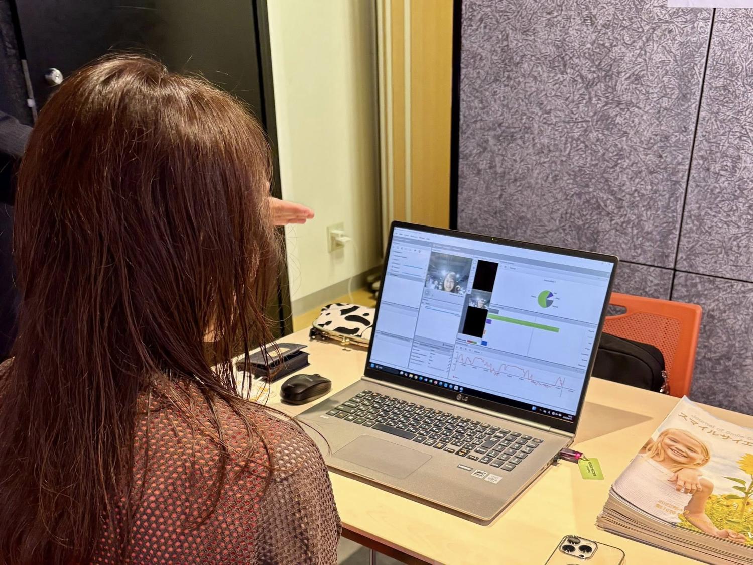 笑顔を向けると幸せを表す緑のデータが人一倍大きく出て凄いですね! とスタッフさんに褒められご満悦なわたし 笑。