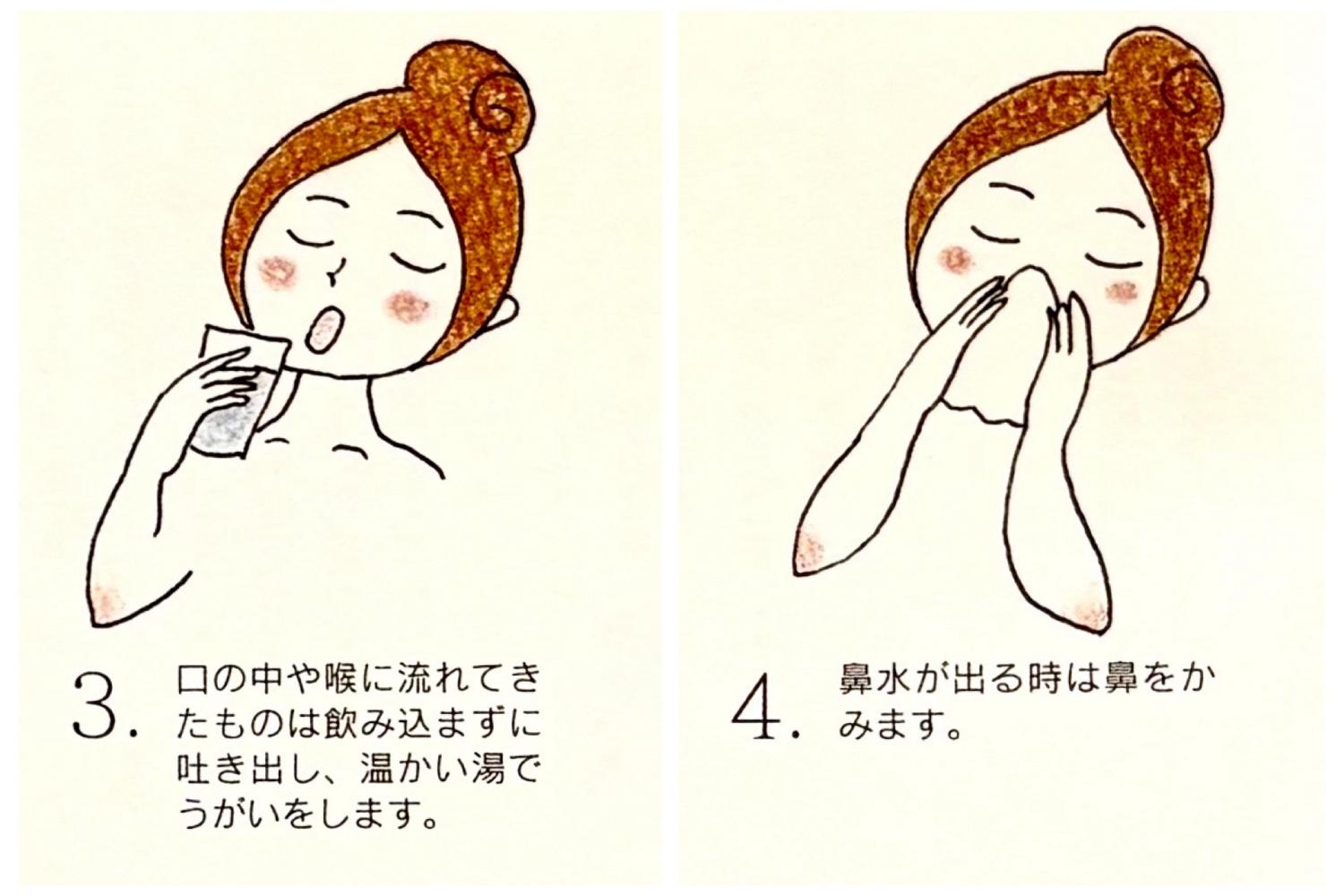 やり方は次のとおり。上の写真では椅子に座ったまま点鼻していますが、仰向けに寝た状態だと、よりやりやすいです。