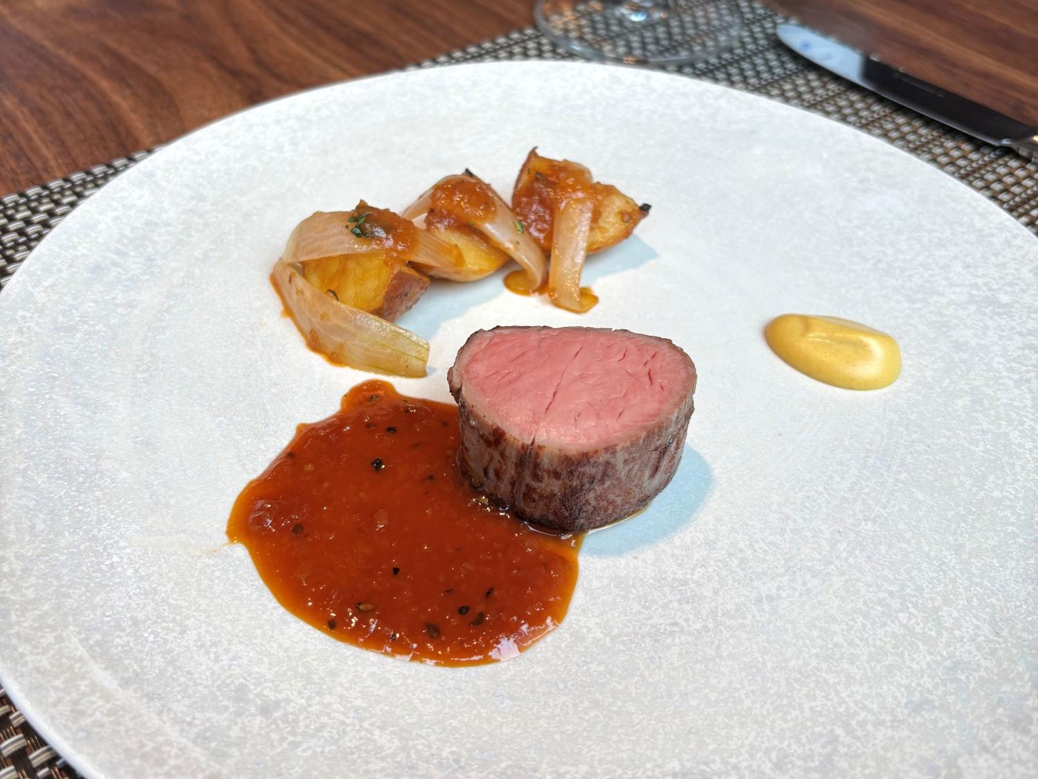 低温調理で生のような食感のサーモンに濃厚なサヴィヨンソースが良く合います。