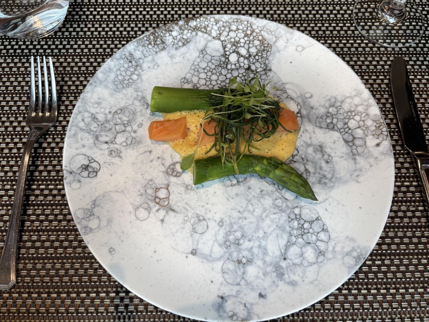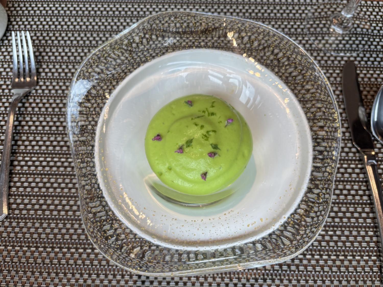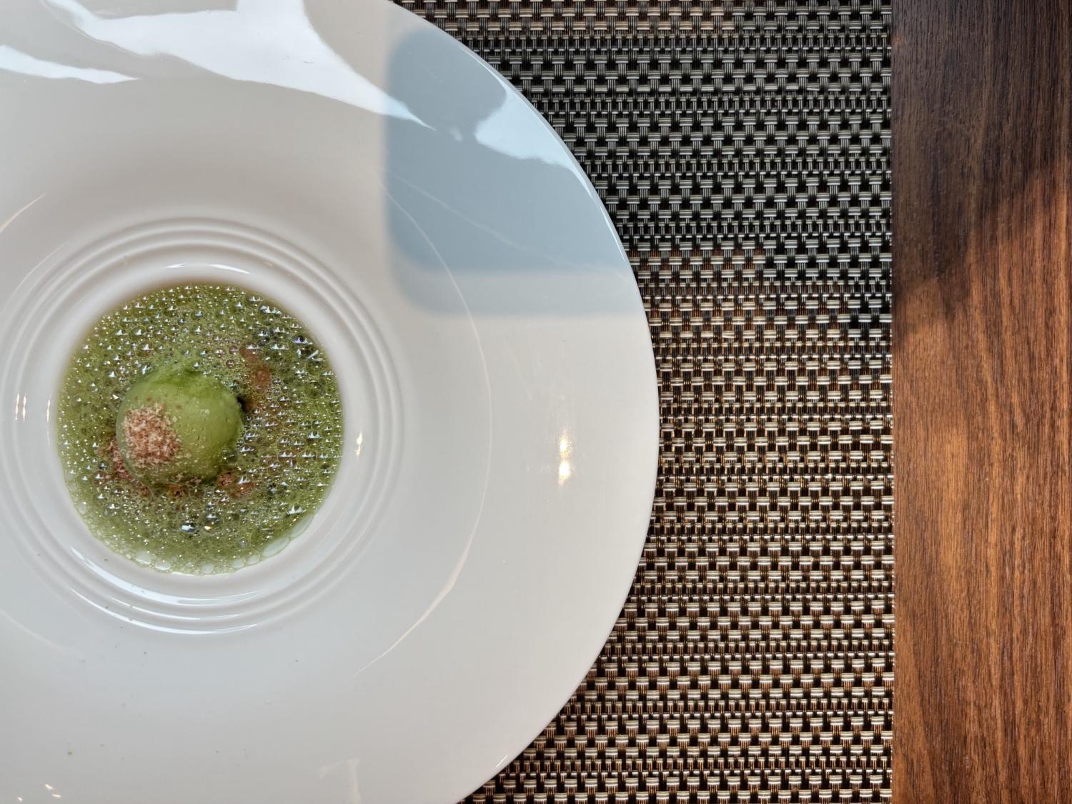 グリンピースの素材の味がしっかりしたエスプーマの下にはサラダが。