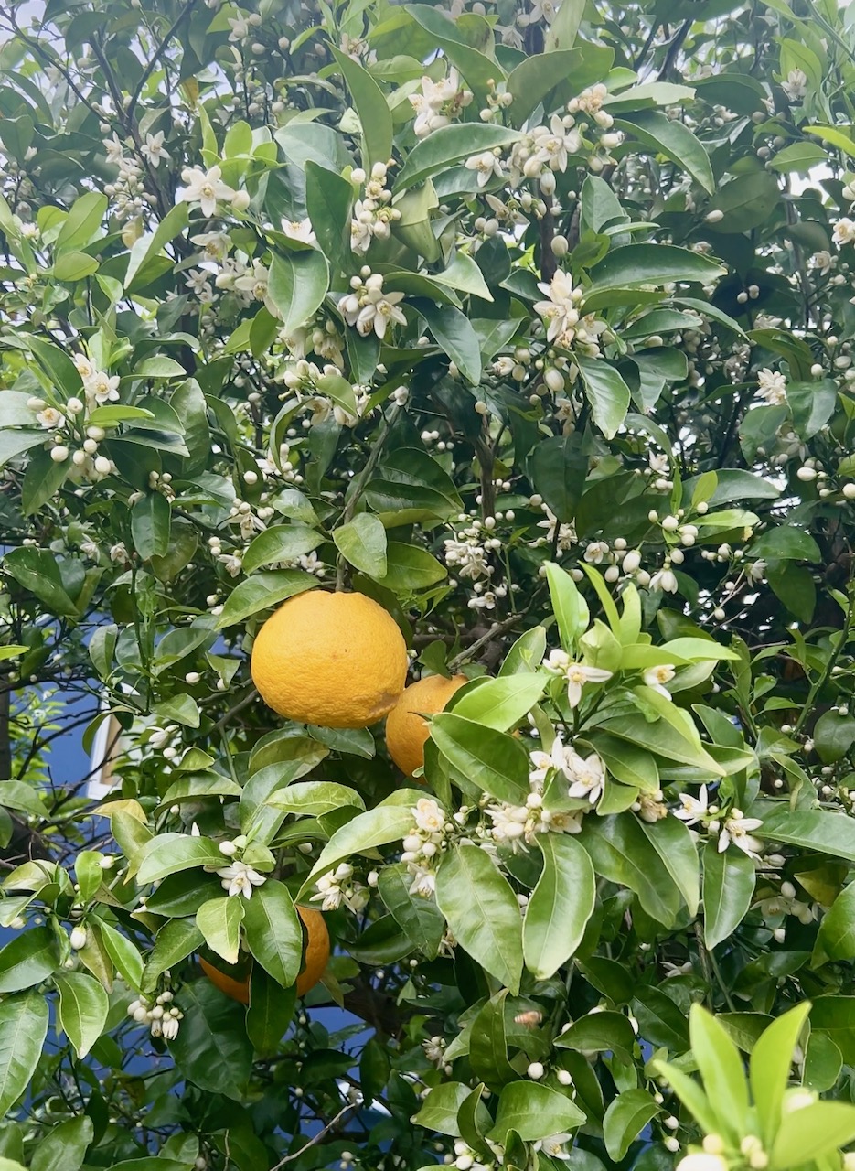 訪れたのは4月の末。畑に着いたらなんとビックリ!花盛り。甘夏の実と一緒に花が咲いていたのは初めてでした。