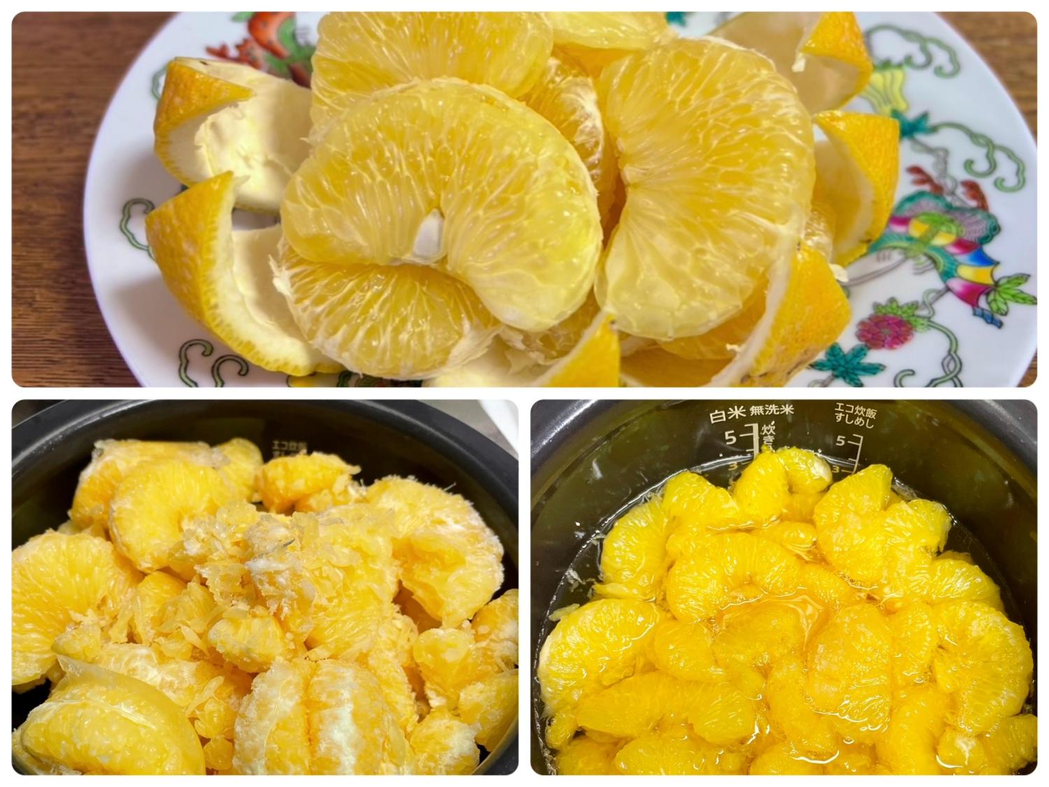 ③炊飯器に入れて、保温で一晩寝かせて水分を出す。