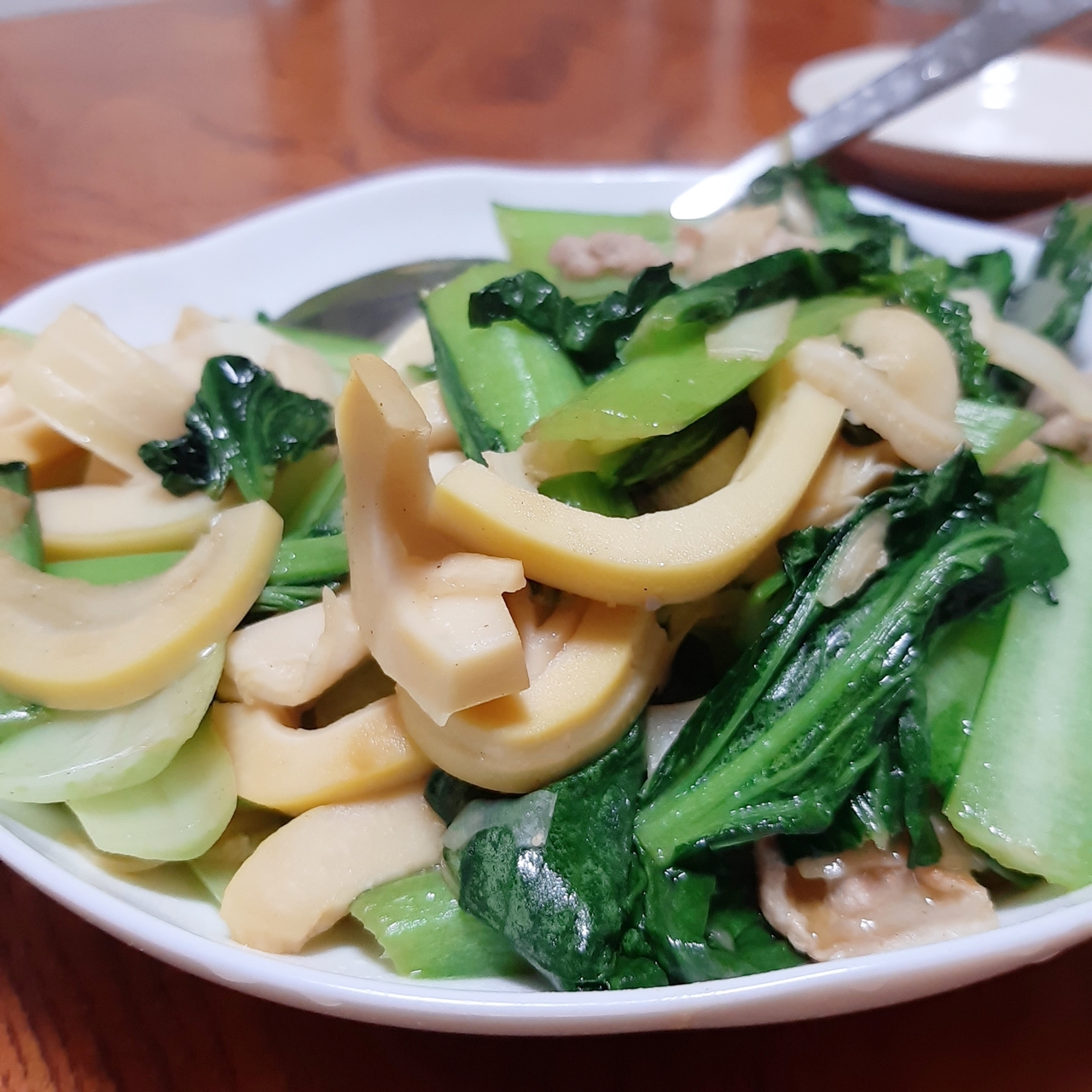 早速、小松菜とタケノコを豚肉で炒めてみました。