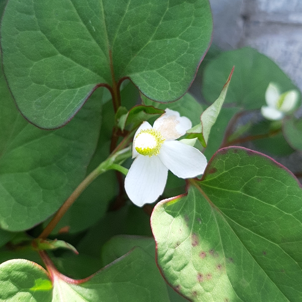 自宅の前にある空き地にはびこるドクダミに可愛いお花が咲きました。