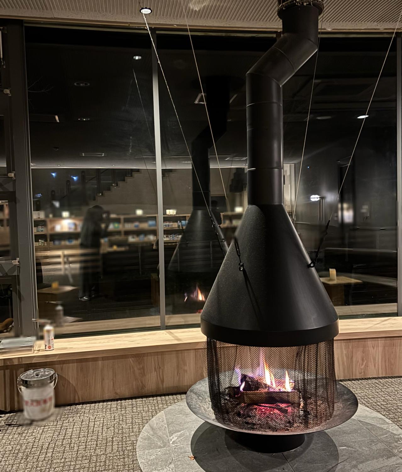 ロビーでは暖炉の炎が揺らめき、穏やかな時間が流れます。