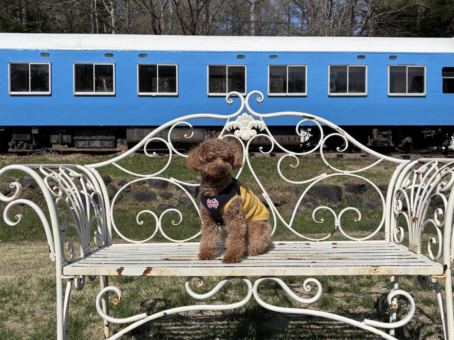 ホテルには広大なドッグランもありますが、目の前が「ブルートレイン広場」になっていてお散歩し放題(笑)。この時期は新緑が綺麗ですね。