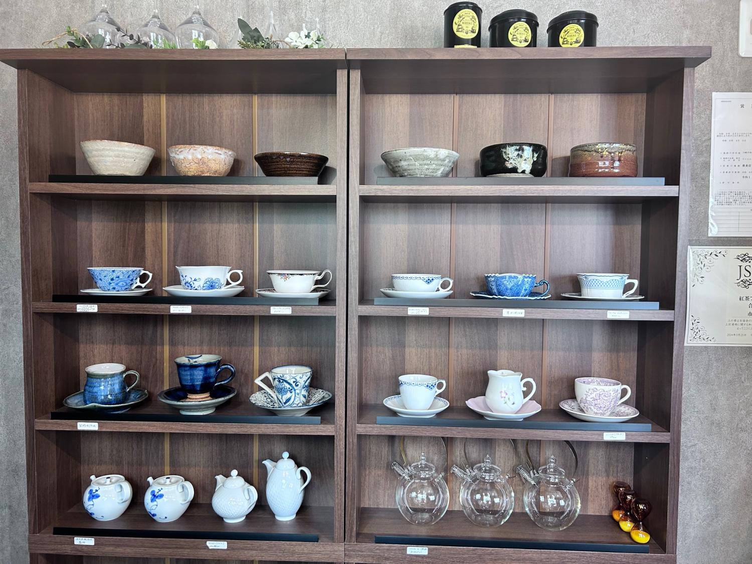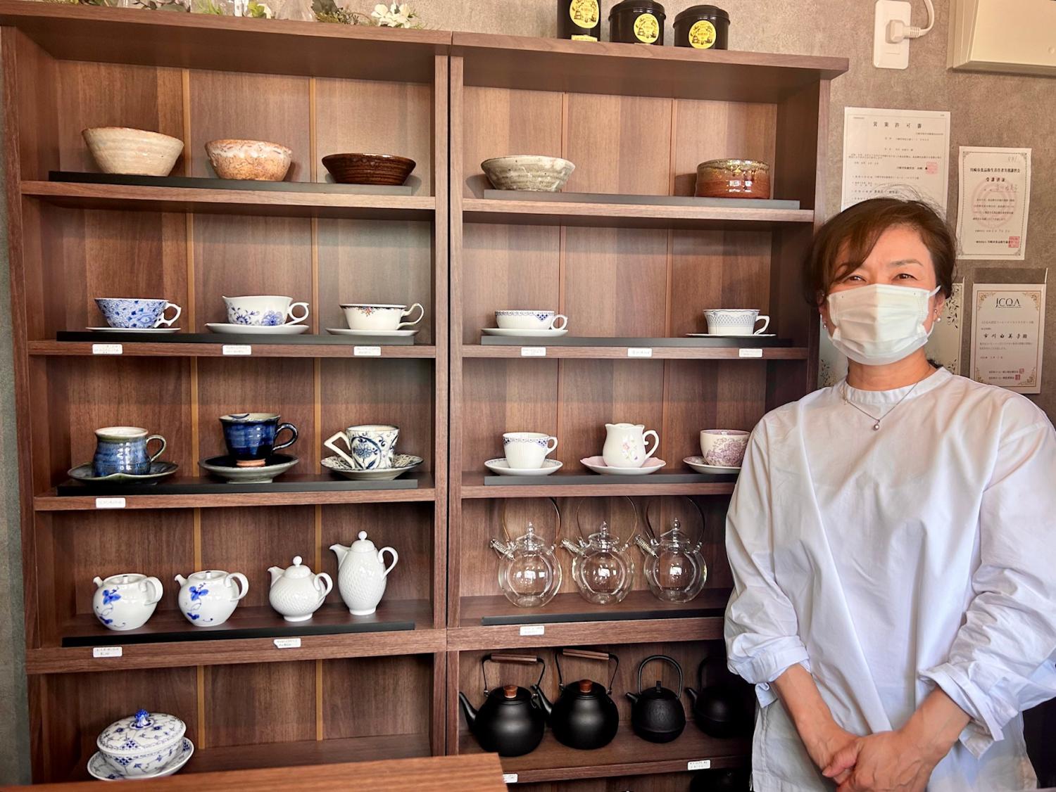 店主の市川さんが優しい笑顔でお出迎え。素敵なカップがズラッと並んでいます。