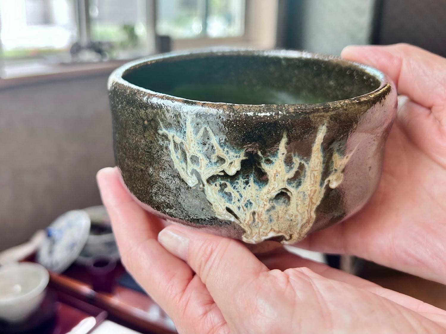 鮮やかなグリーンのお抹茶を大切にいただきます。美味しい〜。