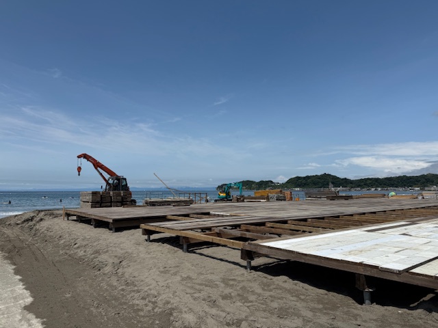 6月に入り、来たる夏に向けて『海の家』の建設もはじまりました。毎年恒例の風景。7月18日には鎌倉花火大会も開催予定。海開きが今から待ち遠しいです。