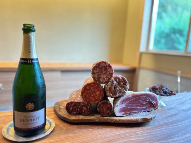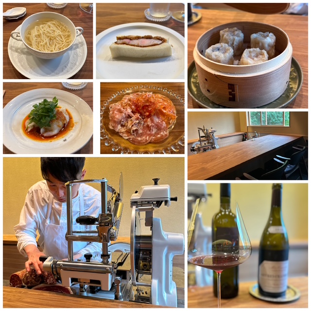 昼から美味しいワインやこだわりの食事がアラカルトで楽しめます。目の前で切ってくれる生ハムは余市の「BOTTEGA PARCO FIERA」。こちらはトルタフリッタで。そのあとはシャルキュトリーを盛り合わせであれこれつまみました。お魚は長井漁港のさかな人長谷川大輔さん。イチリンハナレの人気の水餃子やカツサンドもいただけるというなんとも贅沢なラインナップ。この日は、〆に上湯麺をいただきました。