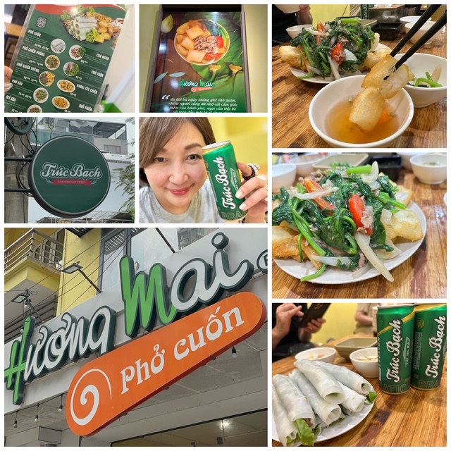 フォーチェンのフォーは、四角く切った生地を油で揚げ、その上にたっぷりの野菜や肉のあんかけをかけたもの。よくあるおこげのあんかけとは異なり、中はもちっとしていてこちらも止まらない美味しさ。ご当地ハノイのビール「Trúc Bạch(チュックバック)」と。真面目な造りで通好みのビールは独特の香りがクセになります。