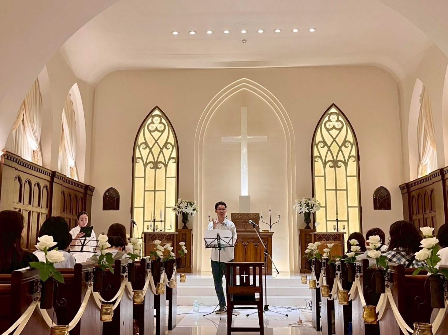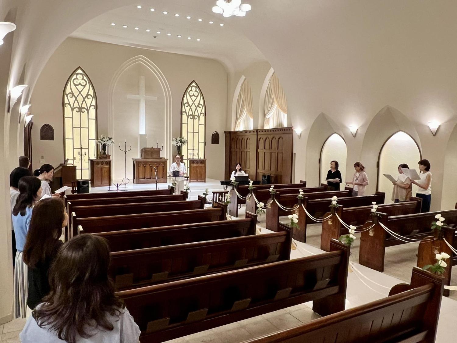 一回のゴスペルレッスンに参加すると日頃のレッスン会場でもある素敵なウェディングチャペル「南青山ル・アンジェ教会」で7/14開催のコンサートに出演できるという魅力的なワークショップです。しかも、19:00~/20:30〜の2回に出演できます。