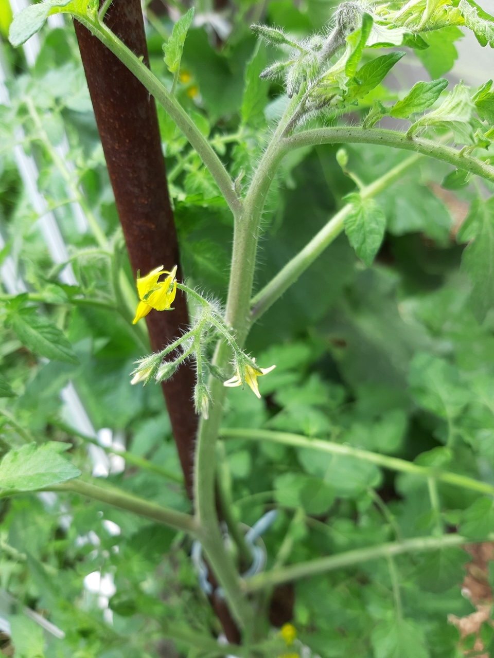 約一ヵ月でトマトに小さくカワイイ花が咲きました。