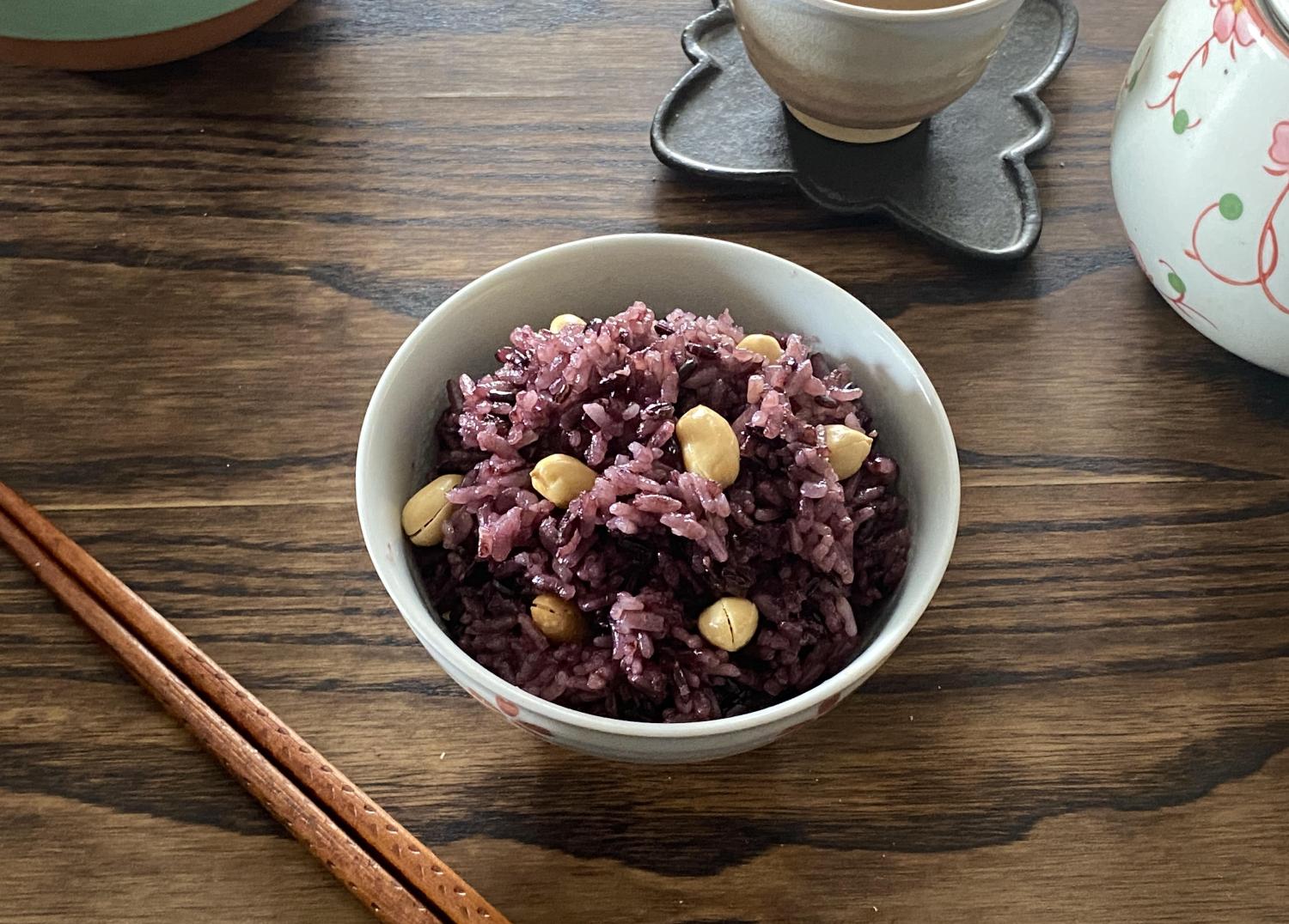 【黒米】体の潤いや血を増やすと重宝されてきたのが黒米。炊き上がりがもっちりとしているので冷めても美味しく、お弁当にもぴったり。